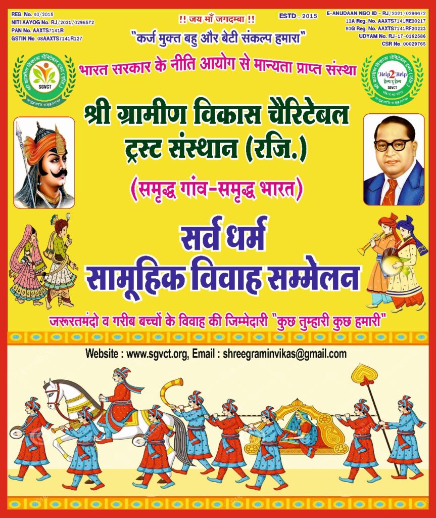 यह योजना श्री ग्रामीण विकास चैरिटेबल ट्रस्ट द्वारा संचालित एक सामाजिक पहल है, जिसके अंतर्गत आर्थिक रूप से कमजोर परिवारों के विवाह सामूहिक रूप से सादगी और सम्मान के साथ सम्पन्न कराए जाते हैं।